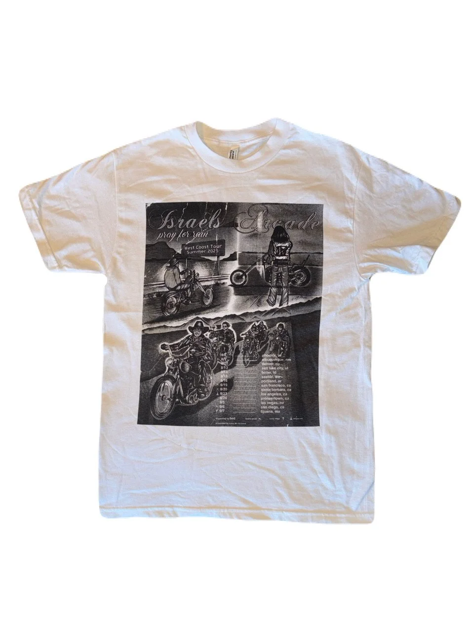 PRAYING HANDS TEE Sold out og logo tee (black) Sold out castle tote bag Sold out PRAY FOR RAIN cd LIVE YOUR fantasy cd stickers & pins bundle highway tee logo tee lovers tee og logo tee (white) Summer 25' Tour Tee $30.00